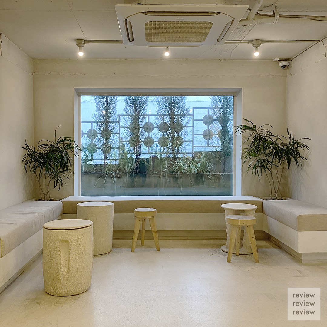 내부는 화이트 혹은 밝은 따뜻한 회색 공간입니다. 아이보리 색상의 조명이 공간을 따뜻하게 만들어 주네요. 저희가 방문했을 때는 손님이 많지 않아서 굉장히 조용했어요. 귣귣!^^