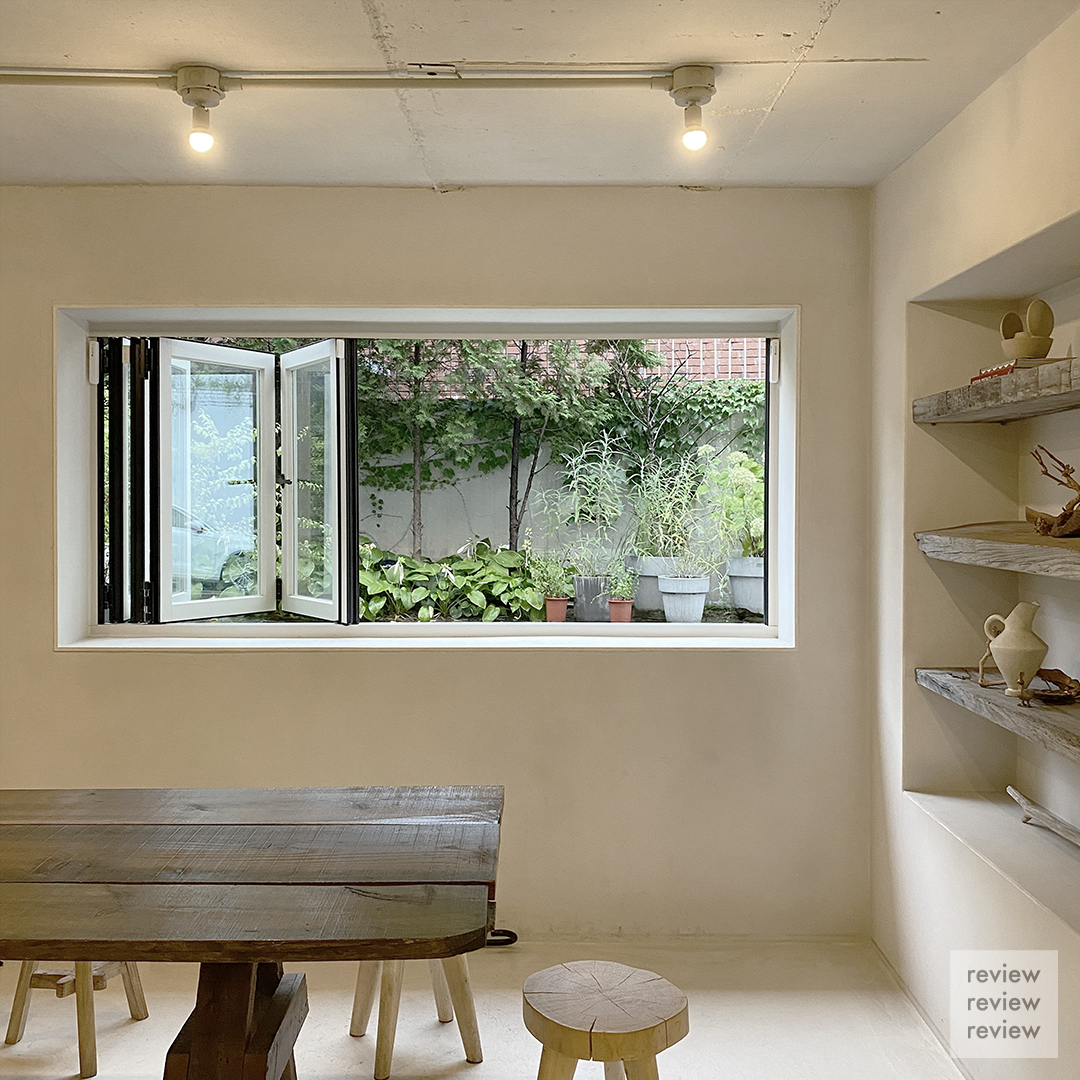 창이 밖에 있는 화단을 향하고 있어서 카페 내부에서 보는 뷰가 굉장히 좋습니다!
