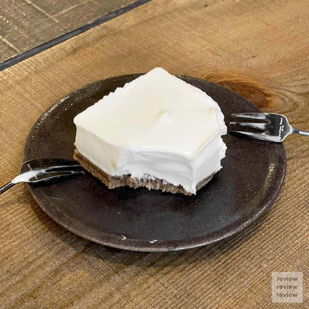 레어치즈케이크는 입이 심심할까 봐 주문했어요. 두부 같기도 하고 아이스크림 같기도 하고 비주얼이 심플해서 좋았어요.