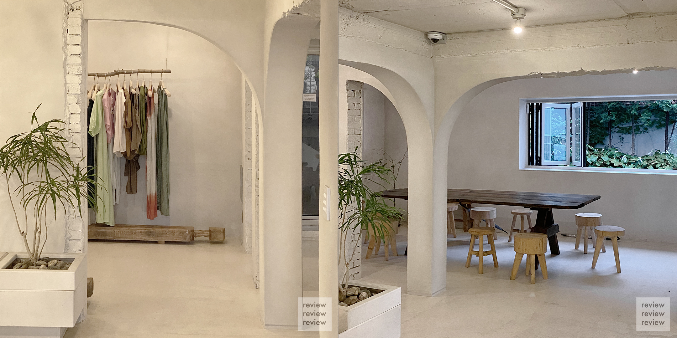 파온은 카페 겸 셀렉샵이라 한 공간에는 옷을 판매하고 있었습니다. 옷들도 공간 분위기와 비슷하게 튀지 않고 차분한 색상의 옷들이 전시되어 있네요.