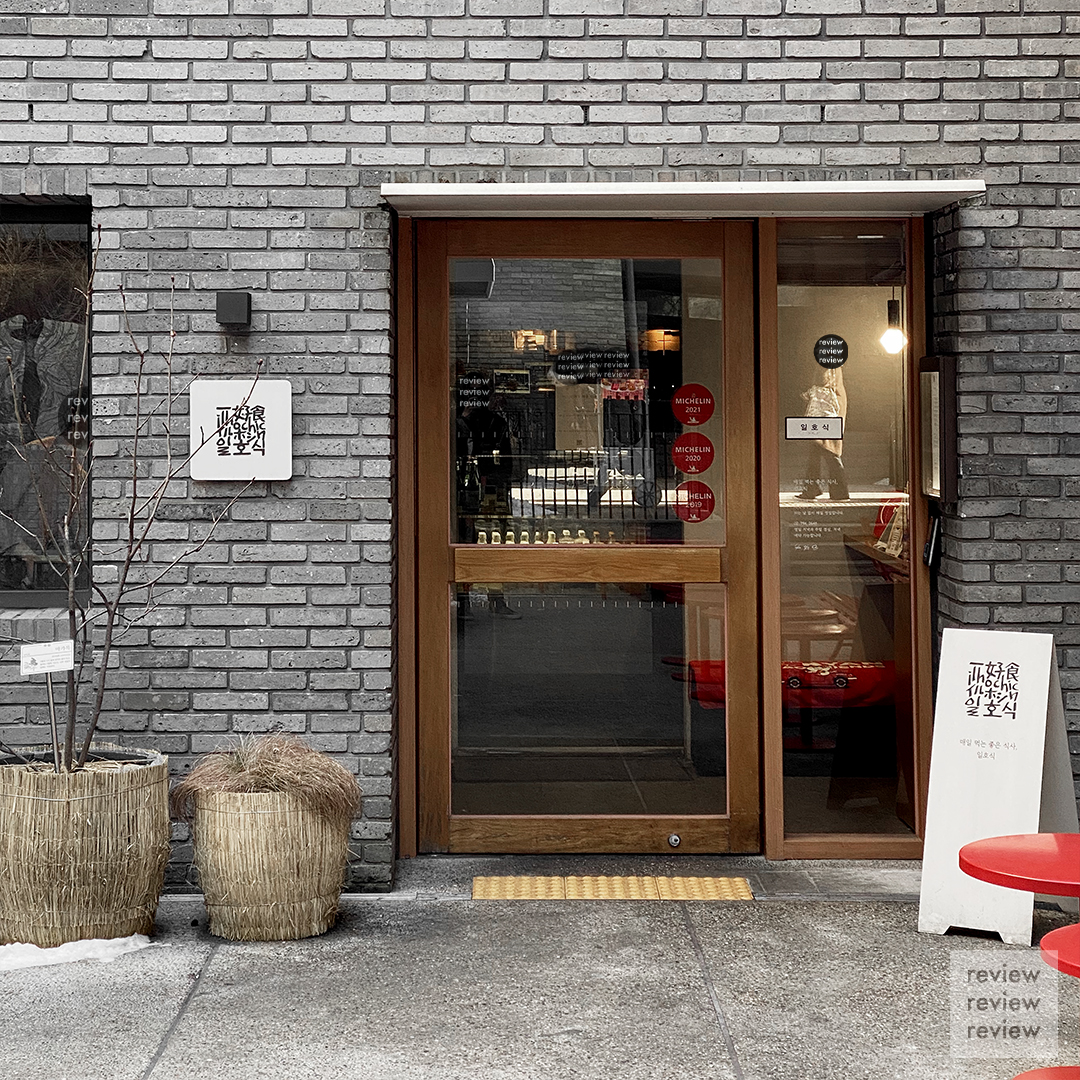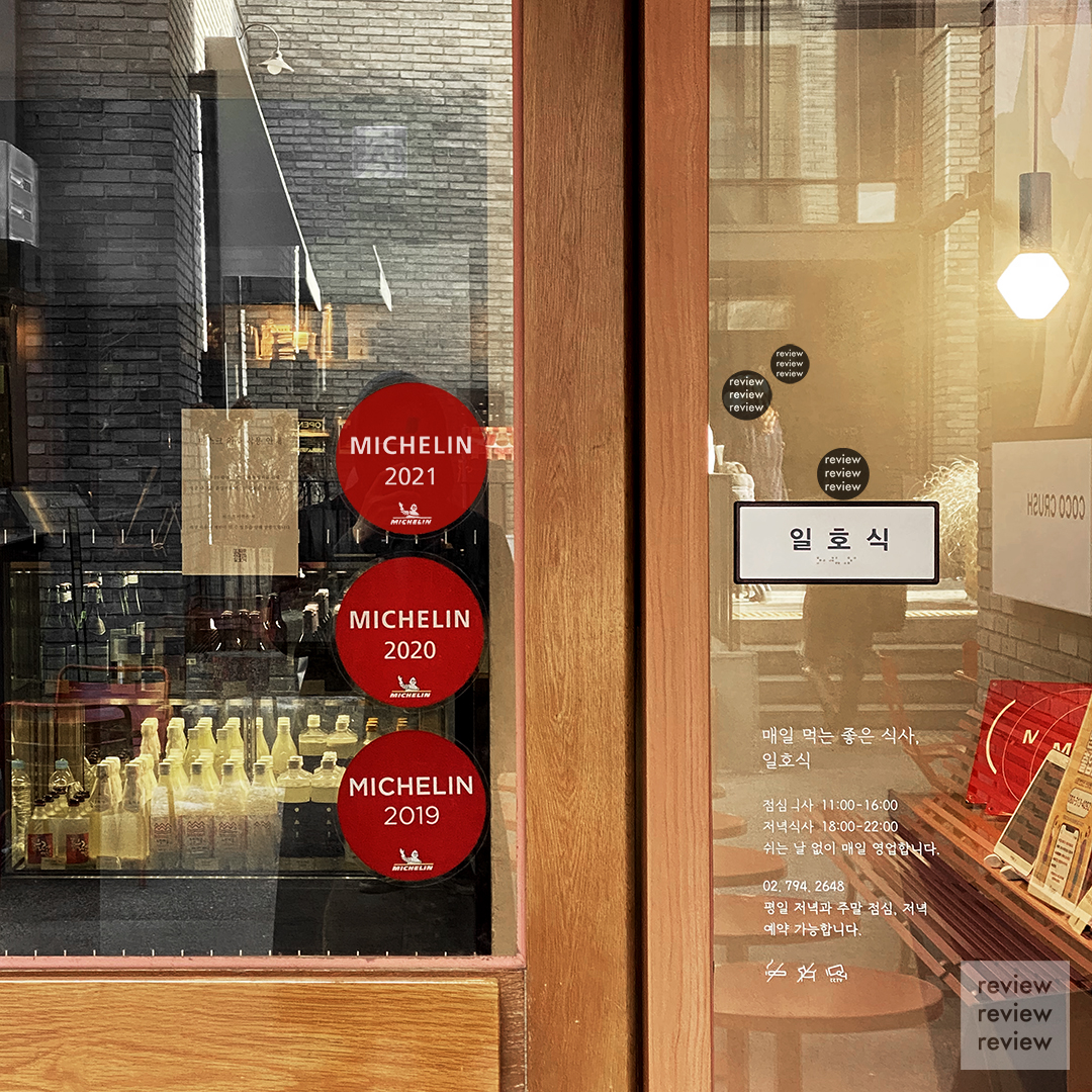 일호식은 사운즈 한남 중심 부분에 위치하고 있어요. 입구에서부터 미쉘린 가이드 스티커가 창에 붙여있네요. ㅎㅎ