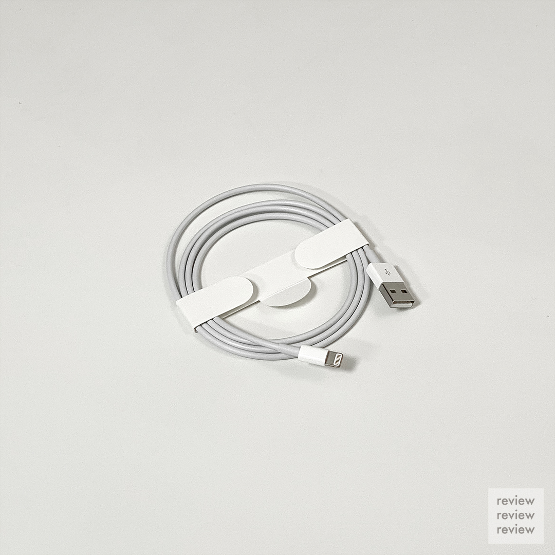 충전을 위한 USB-C-Lightninig 케이블. 잘 말려있어서 뜯기가 부담됩니다. ㅎㅎ