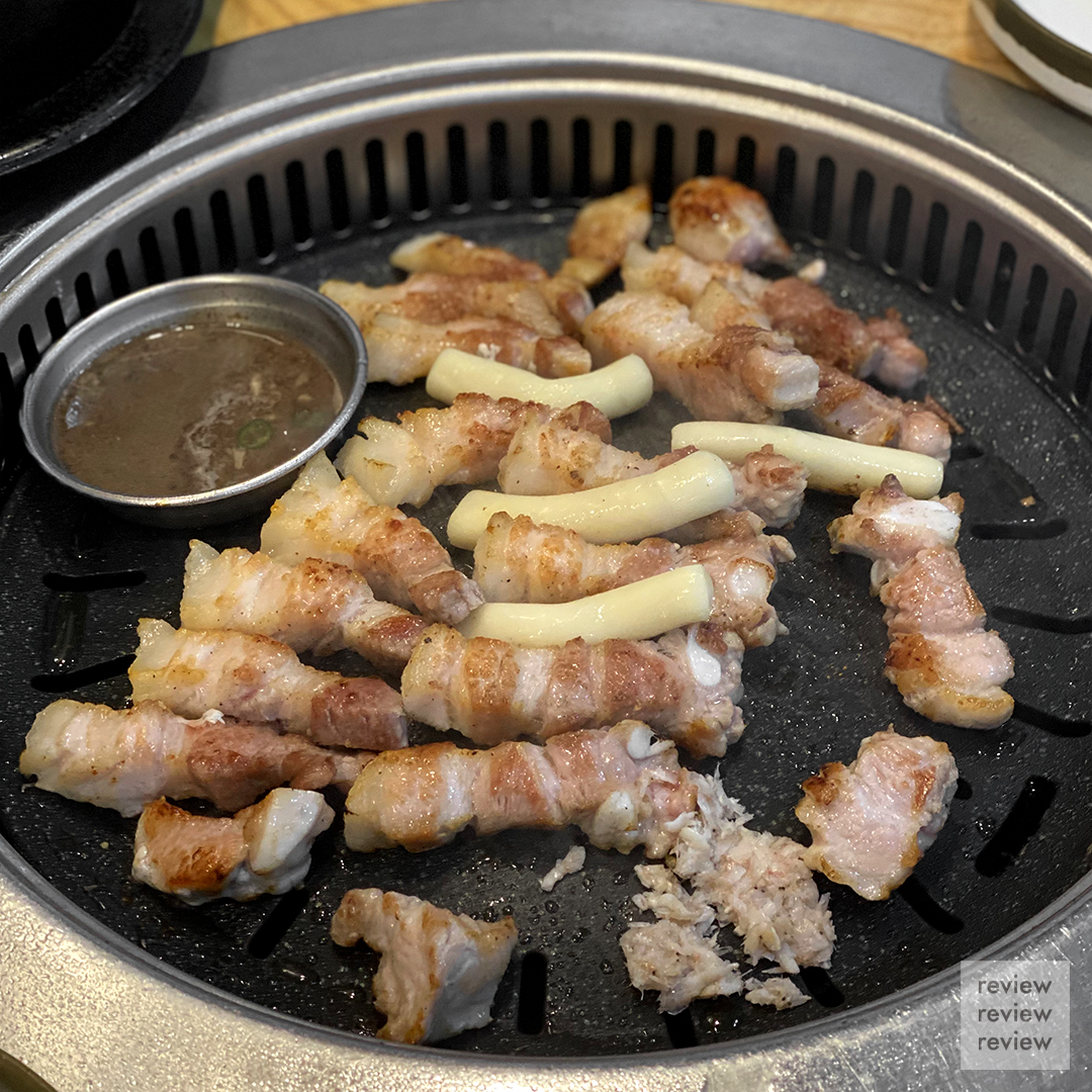 새우젓을 삼겹살에 올려 먹으니 맛있습니다. 뭔가 새로운 맛이네요. ㅎㅎ 새우젓 소스에 찍어 먹어본 적은 있어도 같이 구운 새우젓을 올려 먹기는 처음인 거 같아요. ㅎㅎㅎ 떡볶이 떡도 노릇하게 잘 구워지니 맛있습니다. ㅎㅎ