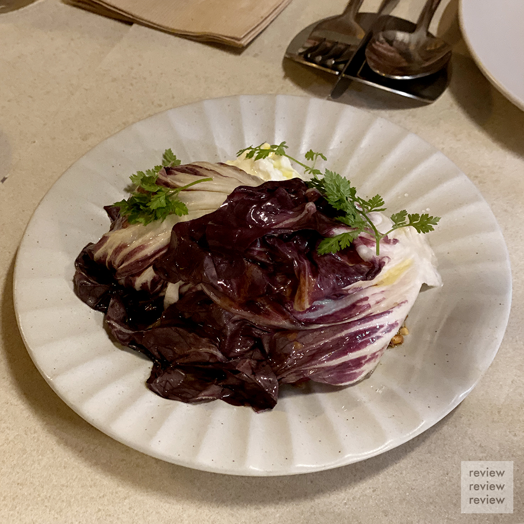 처음으로 나온 부라타(21000원)입니다. 그래놀라, 절인 라디치오, 브라운 치즈, 레몬오일이 들어간 메뉴입니다. 절인 라디치오 맛이 독특하네요. ㅎㅎ