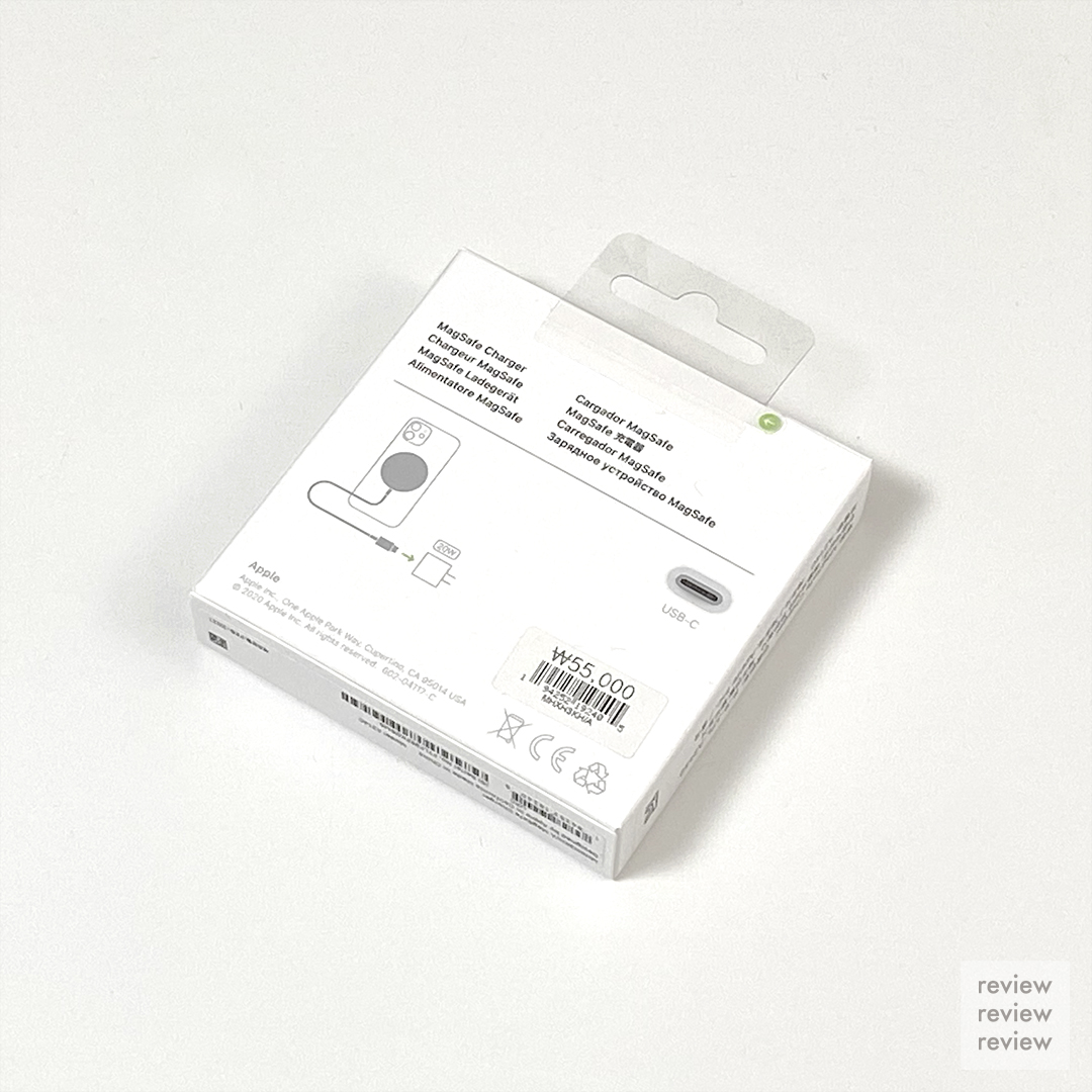 패키지 뒷면입니다. 저는 MagSafe 충전기를 작년 2021년 말에 구매를 하여 지금보다 4,000원 싼 55,000원에 구매를 하였어요. ㅎㅎ 구매하고 사진을 찍었는데 이제야 언박싱 리뷰를 올리네요. ㅎㅎㅎ