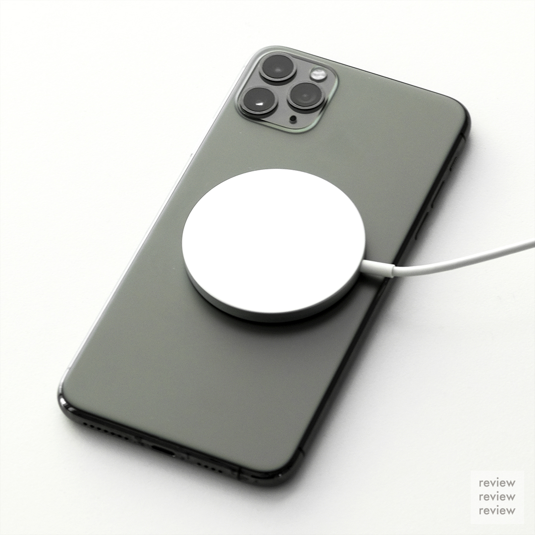 MagSafe 케이스는 없지만 사용하고 있는 아이폰을 올려놓고 충전해 줍니다.^^ 잘 되네요. ㅎㅎ MagSafe 케이스가 없어도 어느 정도 자성이 있어 부착이 됩니다.