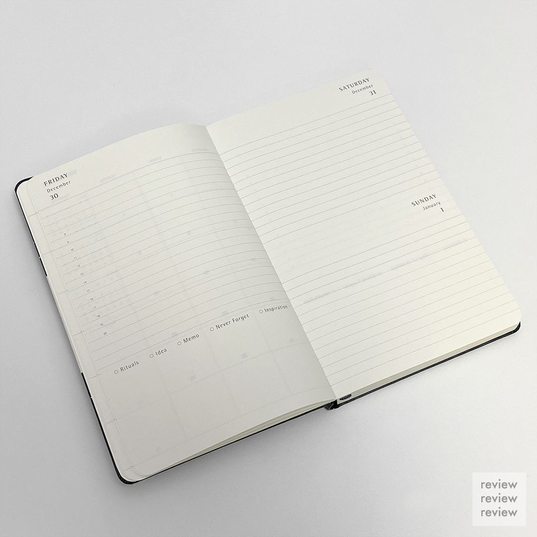 그 뒤로 일별 노트 페이지가 나옵니다. 한주를 정리할 수 있도록 정리 칸도 있네요. ㅎㅎ 좋습니다.