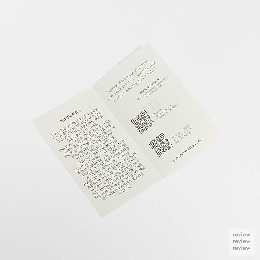 설명서를 따로 준비하는 몰스킨의 섬세함. ㅎㅎ