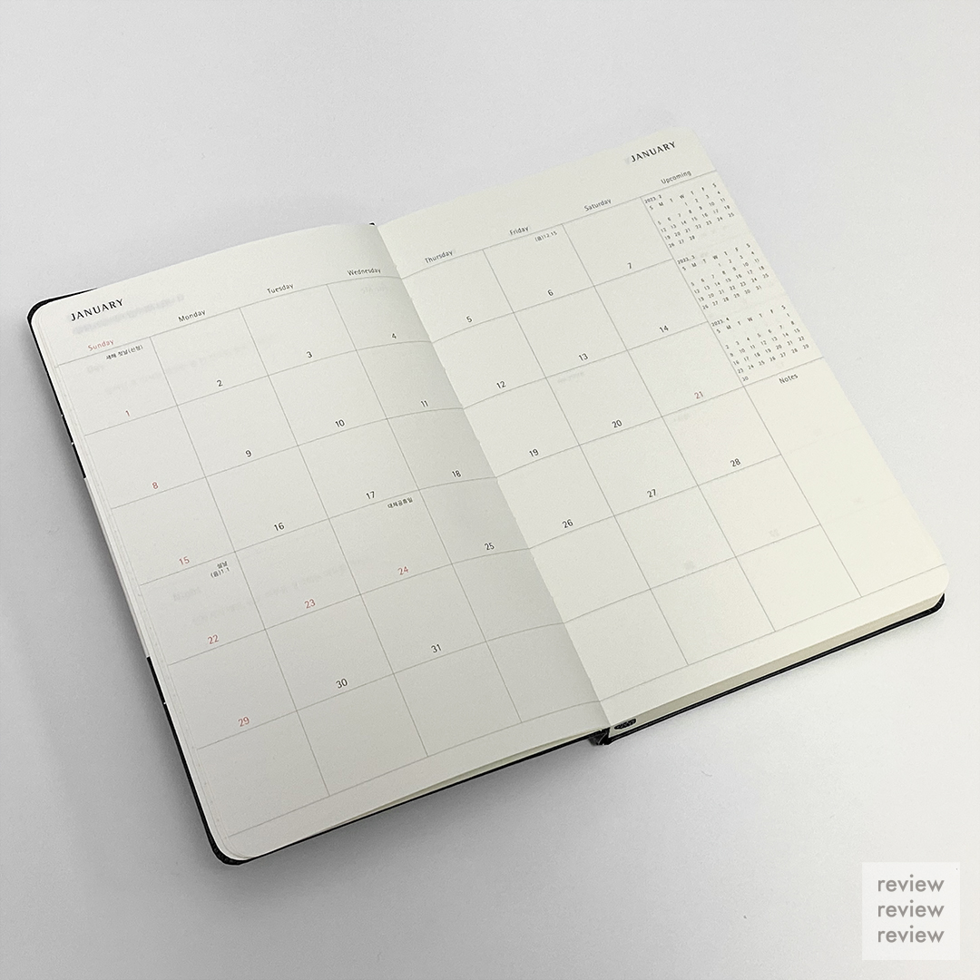 다음은 월별 노트 페이지들이 있습니다. 보통은 2022년 12월을 포함하지 않나 싶은데 바로 1월부터 시작하네요. ㅎㅎ
