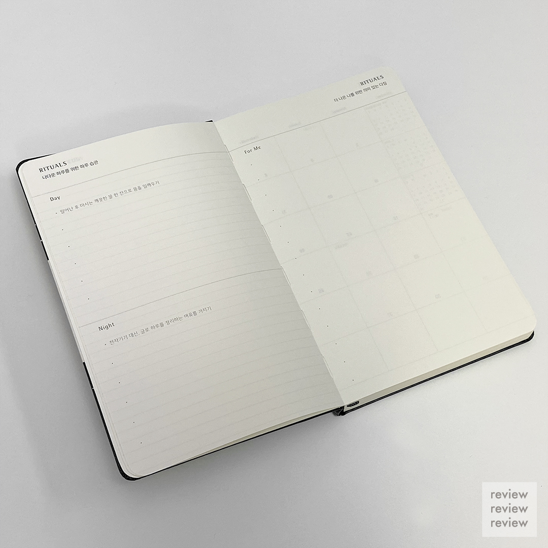다음은 '나다운 하루를 위한 하루 습관'과 '더 나은 나를 위한 의미 있는 다짐'페이지인데요. 리추얼 플래너답게 목표와 루틴을 짤 수 있도록 구성을 하였습니다. 재미있는 구성인 거 같아요. ㅎㅎ