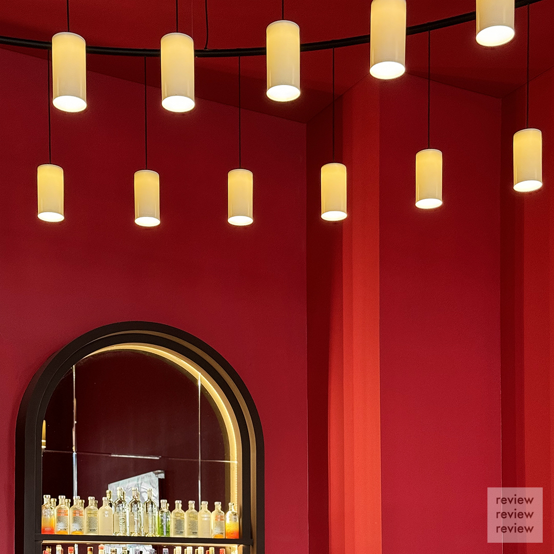 내부 인테리어는 모던하면서도 클래식한 분위기를 풍기고 있습니다. 빨간색의 벽이 강렬하지만 전반적으로 조도가 낮아 분위기를 차분하게 잡나 주고 있습니다. 아치 형태의 거울이 이탈리아 성당의 창문을 표현한 거 같네요.