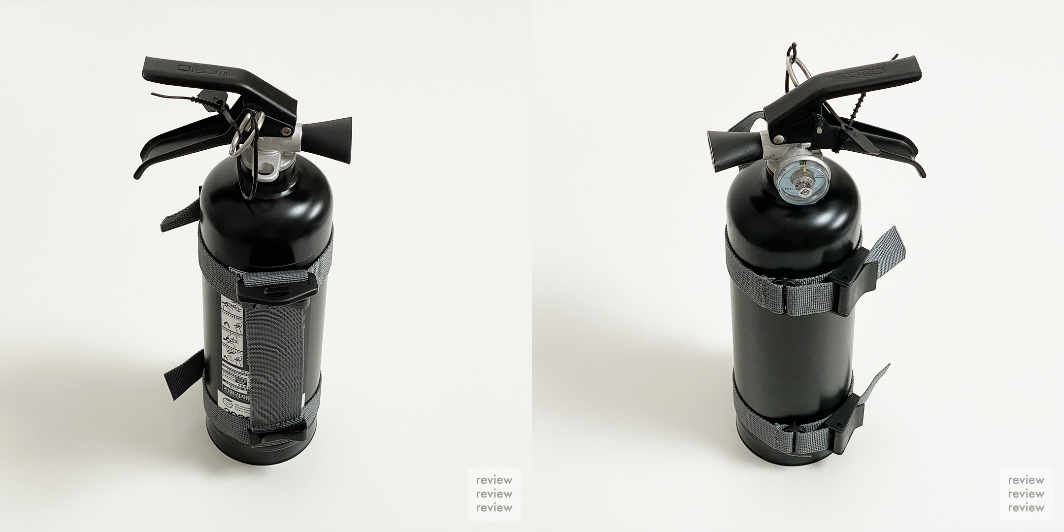 · 차량용 가능 소화기로 차량에 설치 가능. 차량용 스트랩도 포함되어 있음.