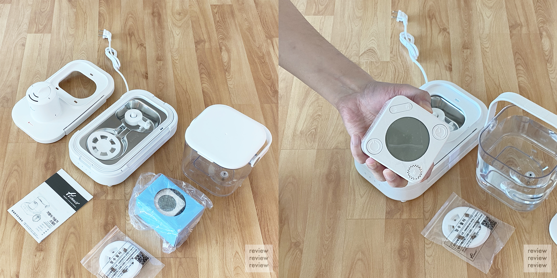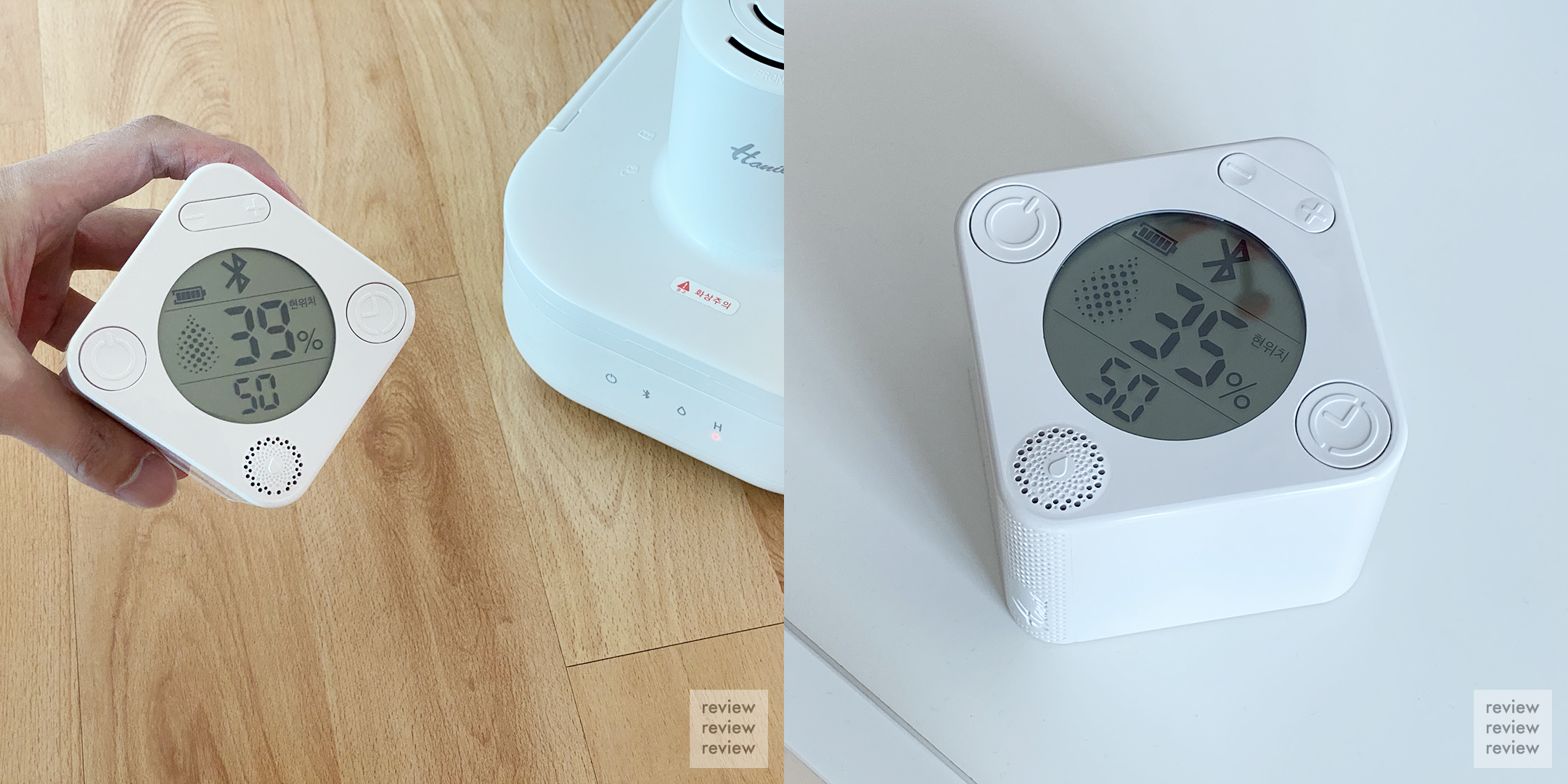 박스에 잘 포장되어 왔습니다. 기존 초음파 가습기와는 다르게 구성품이 좀 많습니다 ^^;;;; 디자인은 약간 증기기관차와 비슷하게 생겨 독특합니다.^^ 블루투스 센서기가 포함된 상품을 구매했으며 센서기에 습도를 정하고 방에다 놓으면 센서기 위치의 습도가 바뀔 때까지 가습기가 작동합니다. 블루투스 센서에는 건전지 2개가 필요하며 상품에 같이 포함되어 있었어요!